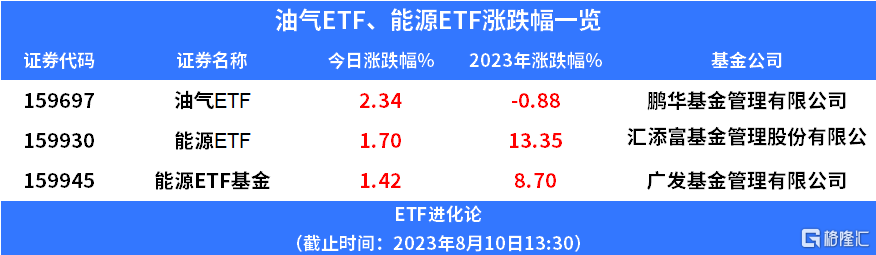博弈鹏华基金油气ETF涨2.34%,汇添富基金动力ETF、广发基金动力ETF基金涨超1.4%。